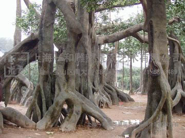 榕树林里的美只有在夜晚你才能感受到,而多场在绝情谷里的重头戏,诸如小龙女不认杨过,都是在这里拍摄的夜戏,加上梦境般的灯光,鲜艳的情花配上水雾,这里确实是一个可以让人忘忧忘情的地方。这个占地一千平米左右的榕树林,远远一看与真树无异,只是较之四周有些凋落的植被相比,就显得有些过青嫩了些。原来这一片枝繁叶茂,盘根错结的榕树林皆是由水泥浇铸而成,树皮纹路都做的栩栩如生,于敏导演表示连拍特写也不会担心穿帮。榕树林下便是鲜艳欲滴的情花丛,雾气管“埋伏”其中,不时的有水雾产生。