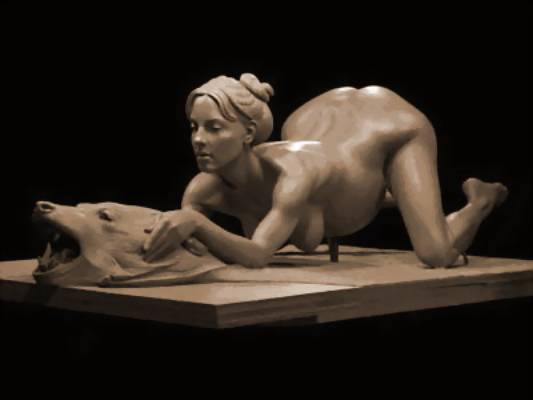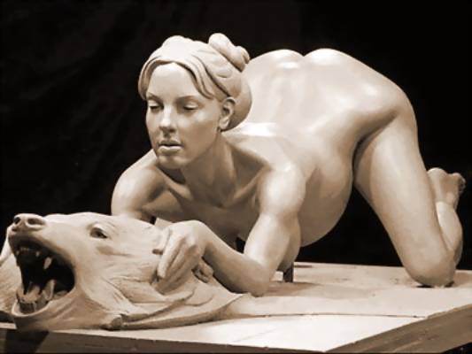 在布兰妮产下第一个孩子肖恩·普雷斯顿半年之后,爱德华兹开始创作这件作品。他介绍,自己一般用三个月的时间完成一件作品,但小甜甜那件却花了6个月的时间。“其实我本来想雕的是小甜甜抓着麦克风生孩子,后来改成抓熊头是想做出一种对照式的平衡感。” |