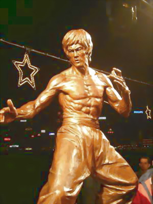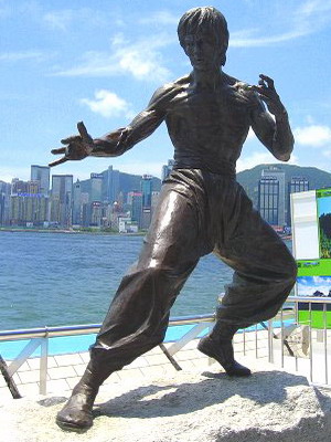 李小龙铜像位于香港尖沙咀东部海滨的“星光大道”,2005年由曾为邓小平塑像的内地着名雕塑家曹崇恩创作。