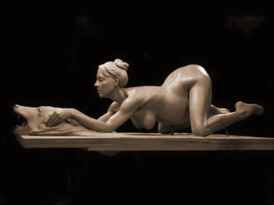 在布兰妮产下第一个孩子肖恩·普雷斯顿半年之后,爱德华兹开始创作这件作品。他介绍,自己一般用三个月的时间完成一件作品,但小甜甜那件却花了6个月的时间。“其实我本来想雕的是小甜甜抓着麦克风生孩子,后来改成抓熊头是想做出一种对照式的平衡感。” |