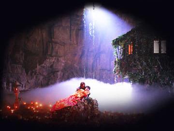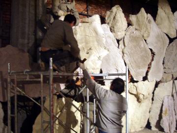创作手记: 在这里首先要满足电视剧对历史古墓场景的要求。片场中不但要有山石洞穴的自然风貌,更要体现出一种古朴通幽之风情,岩壁上各种石刻经文,武学秘笈,活现了一个充满惊险的想象的武学世界,因此在造山时更多的是造一种文化。20000平方的造山工作要在短短45天中完成对我们是一个挑战,但是我们圆满完成了任务,让甲方及中央电视台导演张纪中表示出了百分百的满意度。