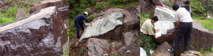 在山石表面用特制材料做好模型:这样名山大川便为我所用