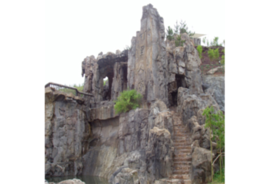 在这里将山、峰、洞、亭融为一体,突破了以往对山的概念,也很好地为高档小区建立了一个休憩漫步的场所。